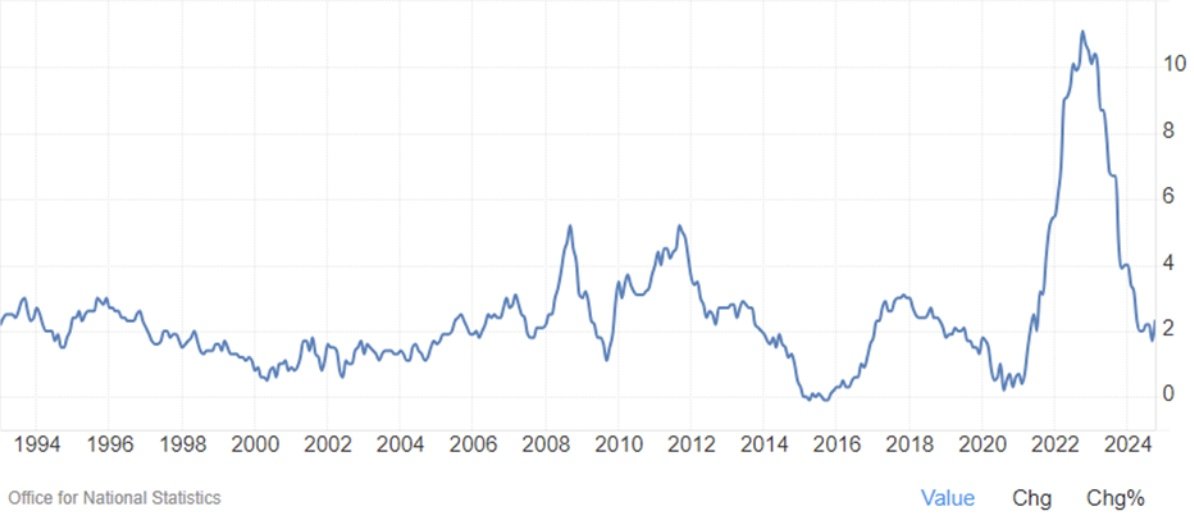 The reminder is unwelcome. £450 billion of money-printing during the Pandemic helped inflation reach 11.2% in October 2022, a rate which remained stubbornly high until April 2024. The inflationary surge wiped out 16 years of prior earnings growth and partly cost the Conservative Party 251 seats in the July election.