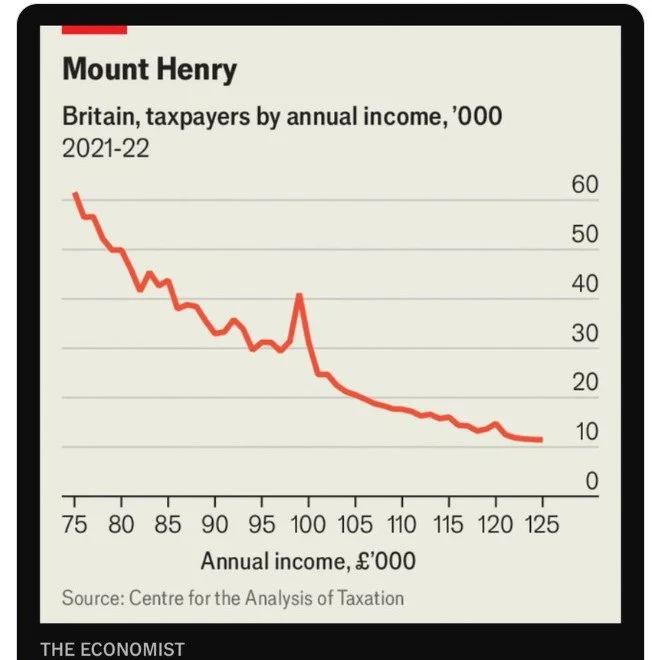 Apparently this is not so. £100k is where the personal allowance starts to be withdrawn, pushing marginal rates up above 60%. In households containing children the withdrawal of varied kiddie related things pushes it over 100%. People really do change their behaviour in the face of marginal tax rates. Even, we have at least some direct evidence of, that happens at rates in the 50 to 60% range. As the Diamond and Saez paper suggests, the US peak of the Laffer is 54% on incomes (note, not income tax, tax upon incomes).